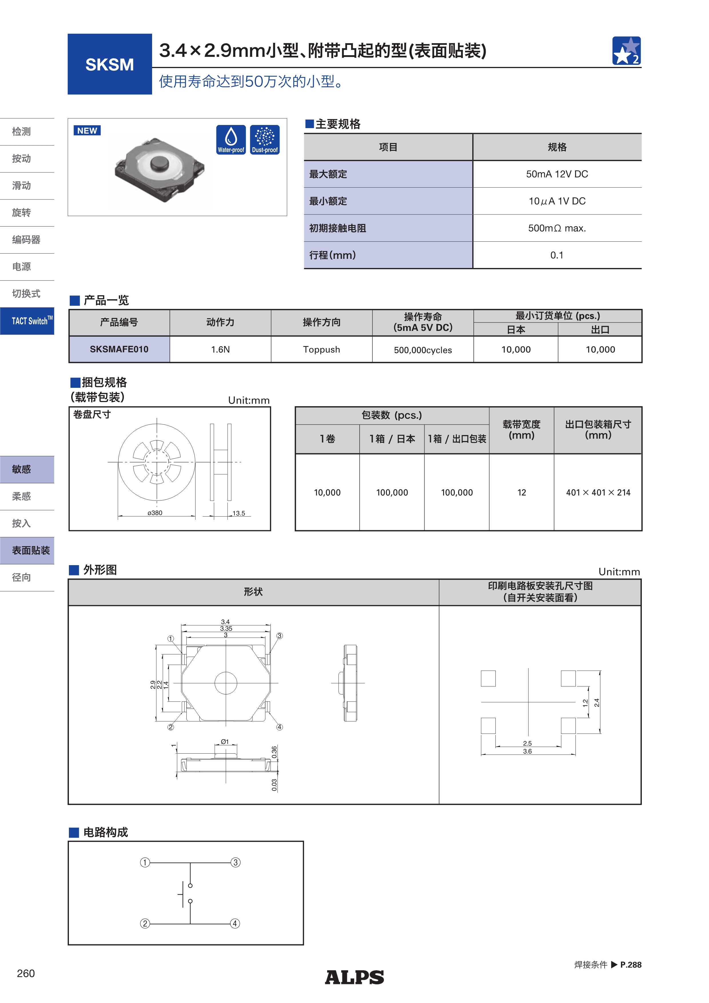 ALPS轻触开关SKSM系列