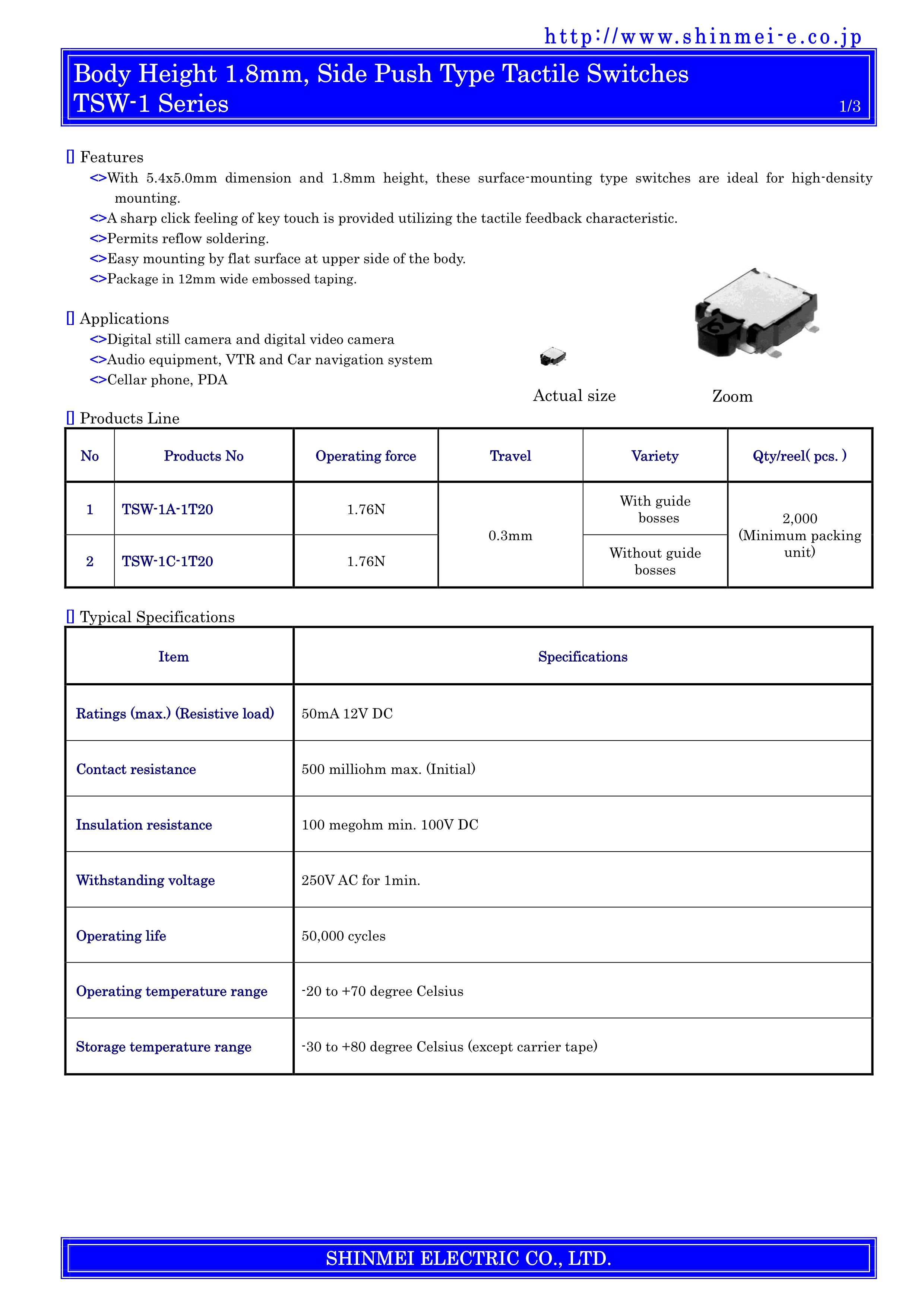 SHINMEI轻触开关TSW-1系列
