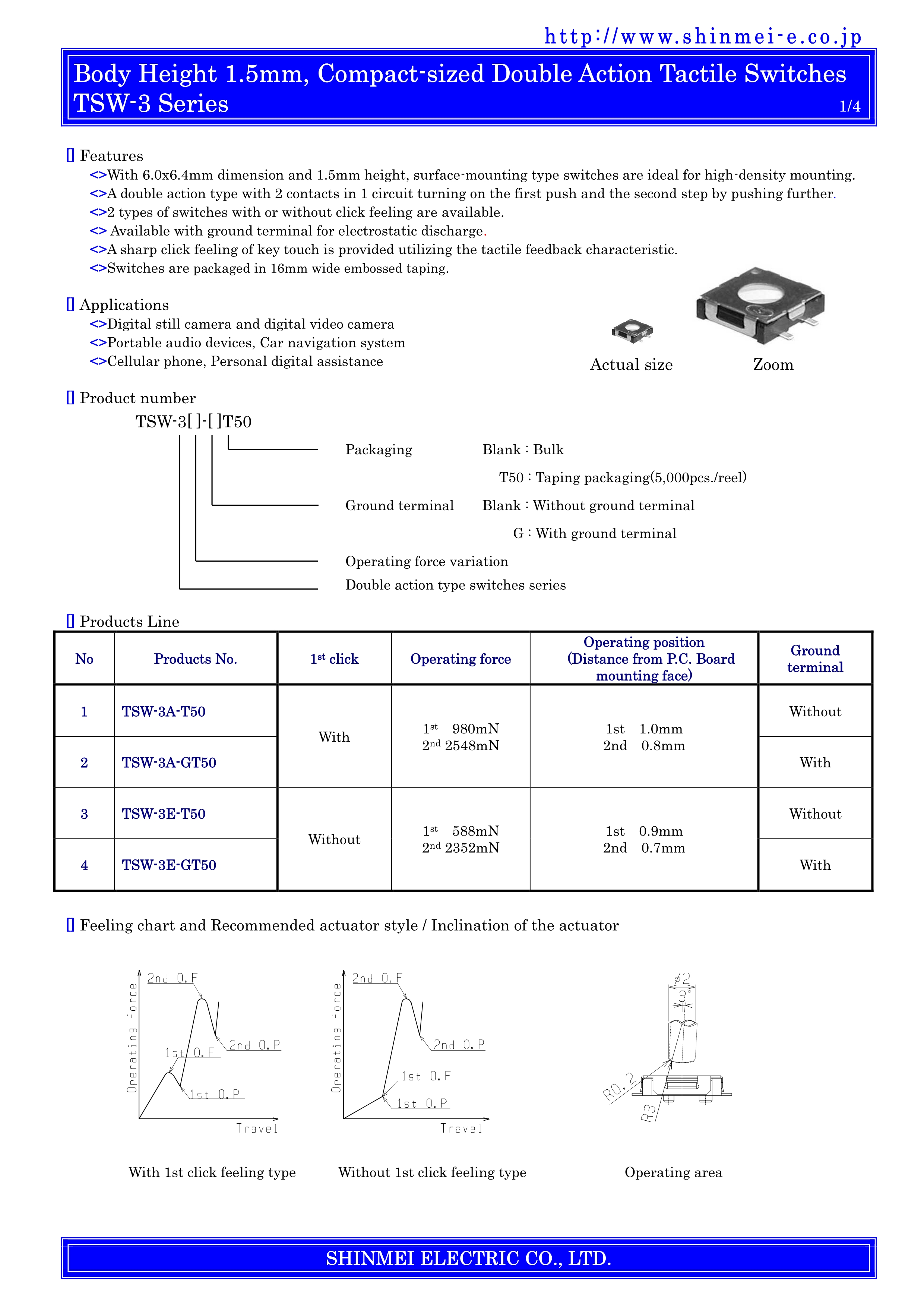SHINMEI轻触开关TSW-3系列