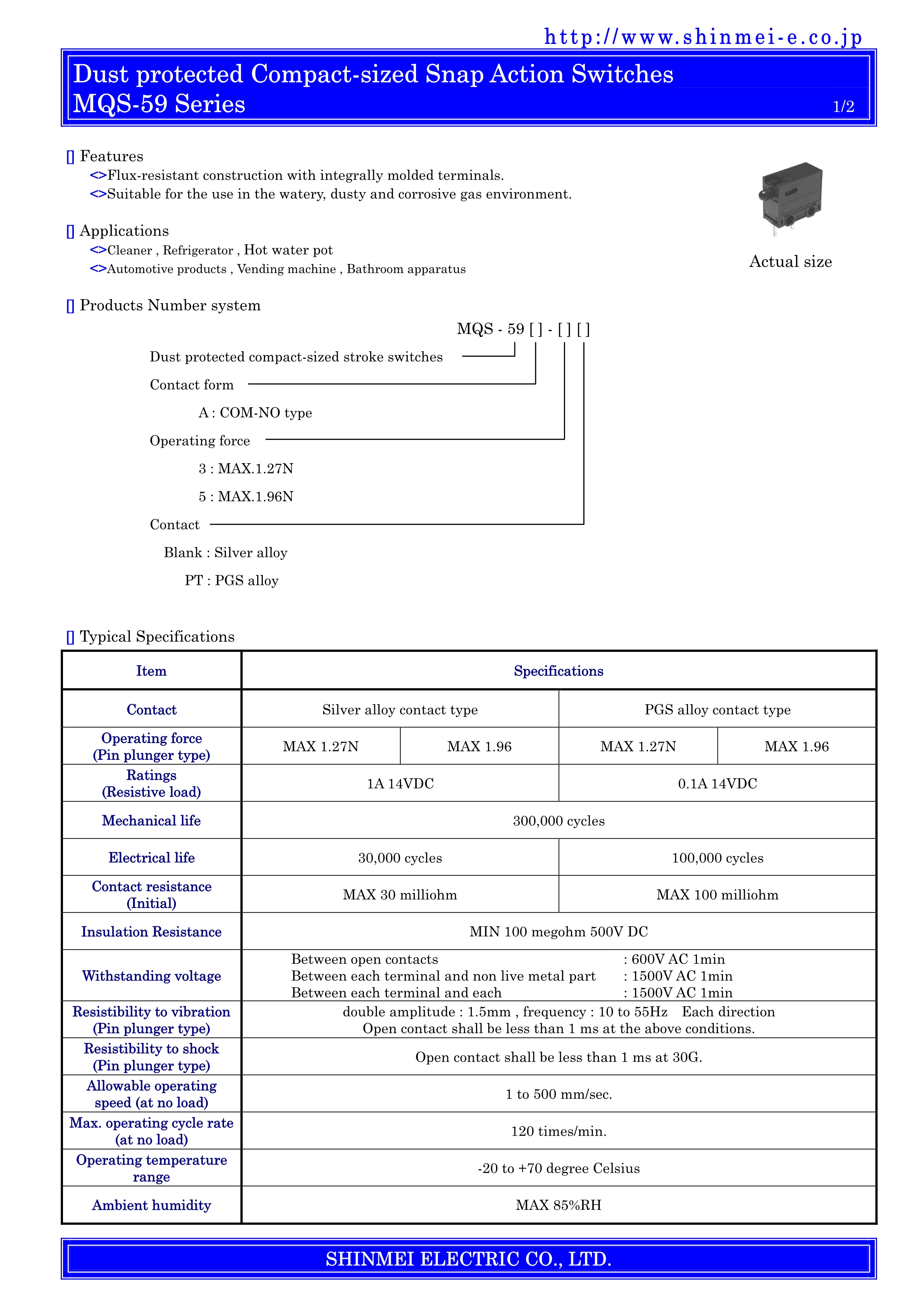 SHINMEI微动开关MQS-59系列