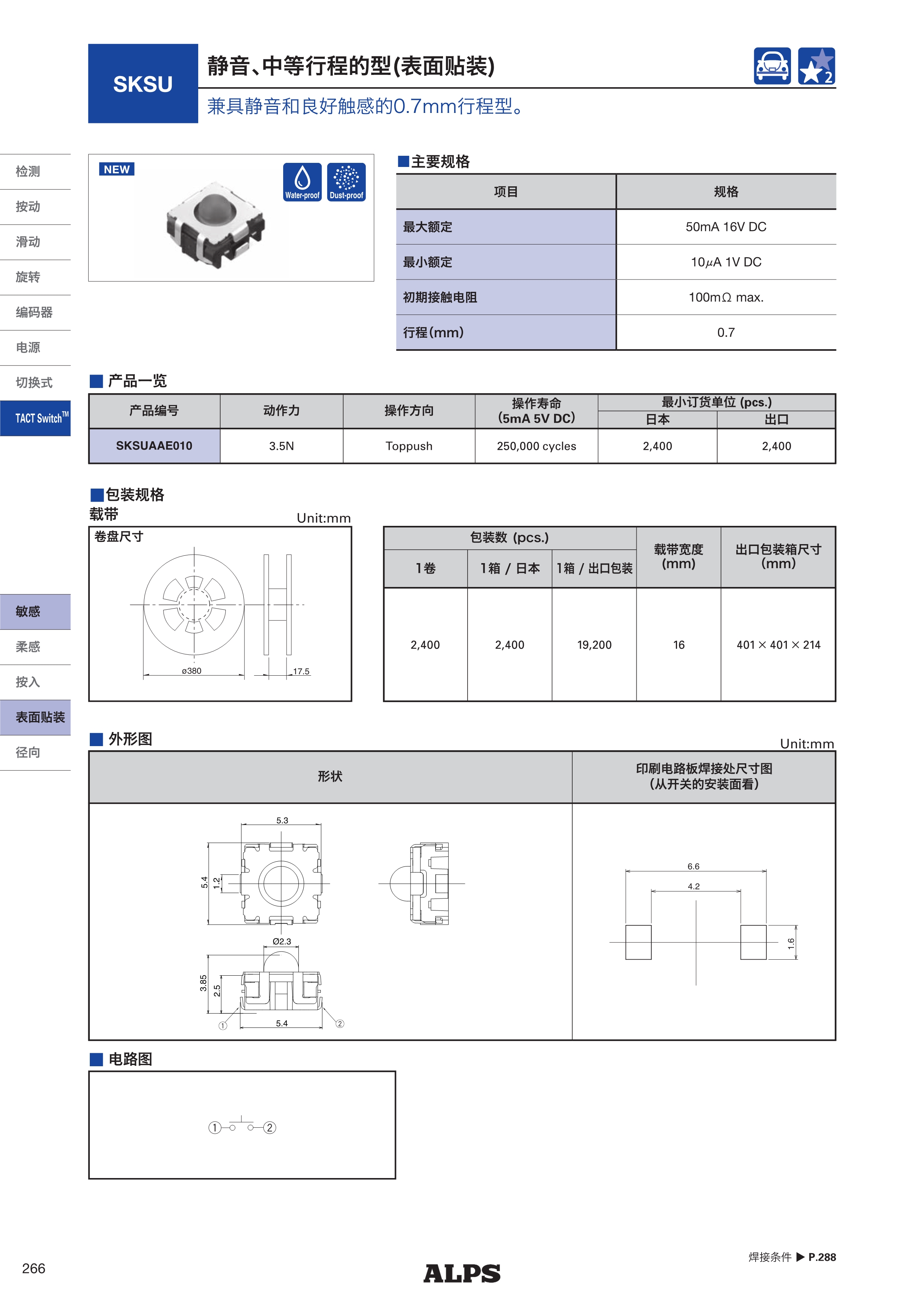 ALPS轻触开关SKSU系列