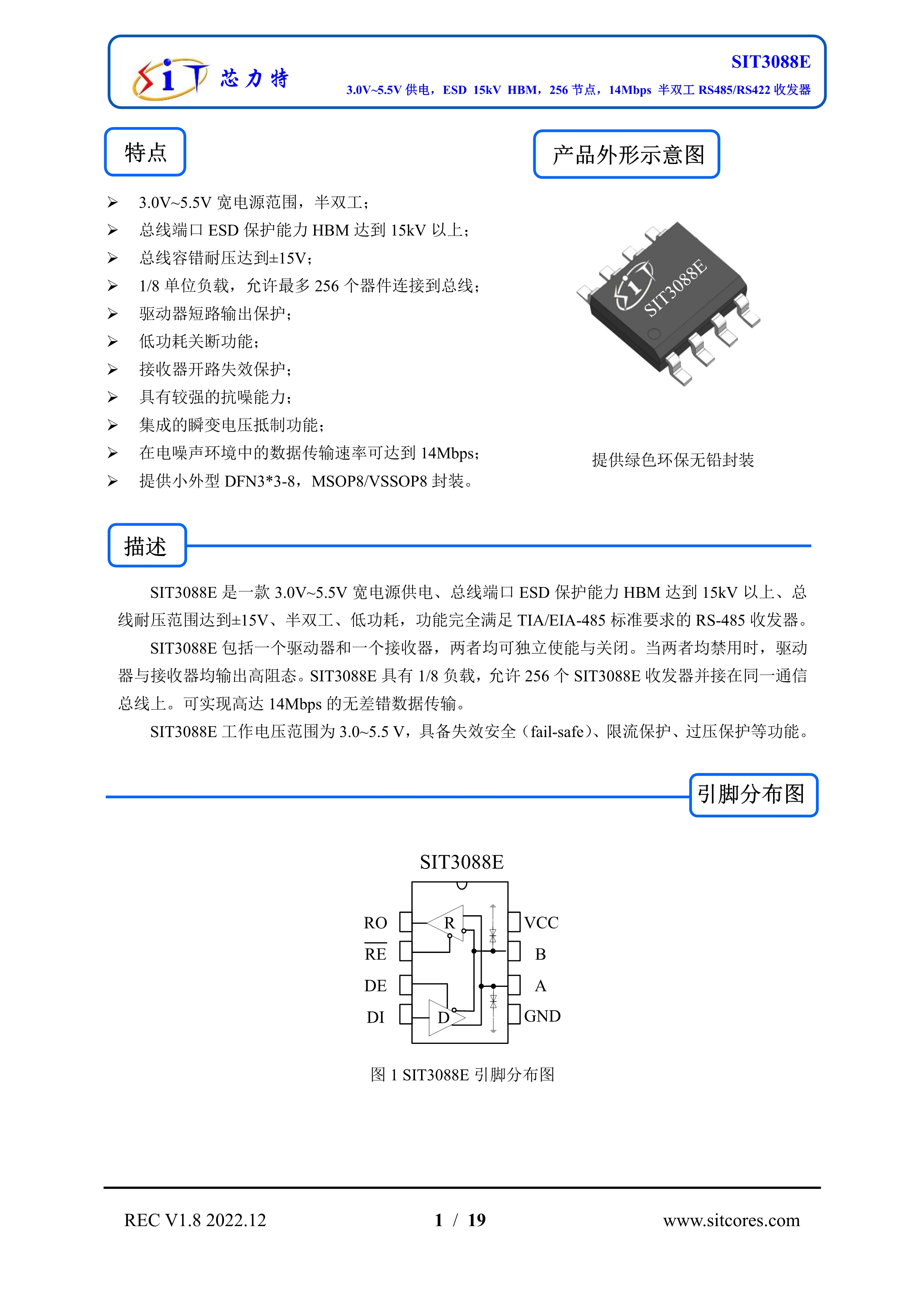 芯力特RS485芯片SIT3088E系列