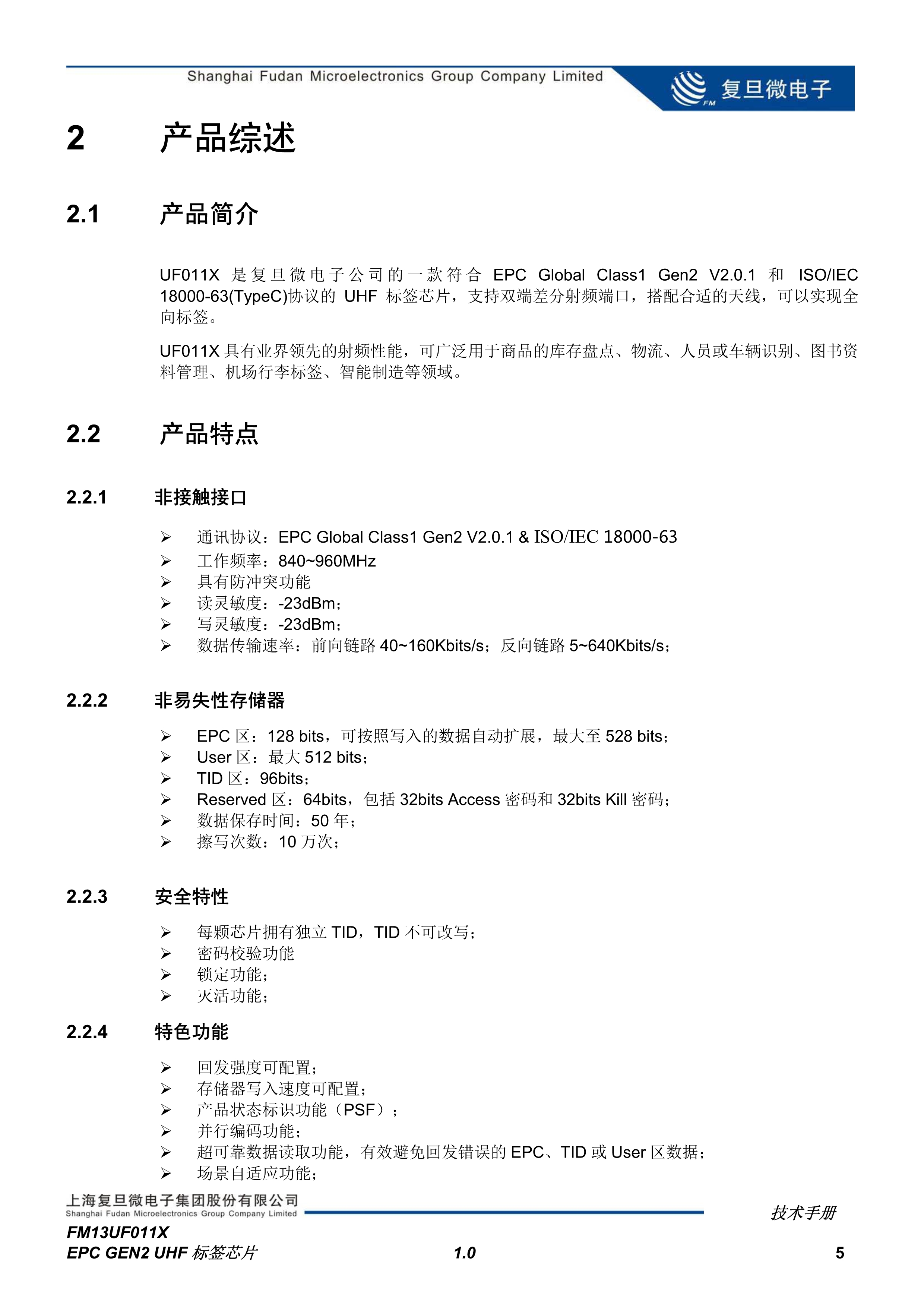 复旦微超高频RFID标签芯片FM13UF011X系列