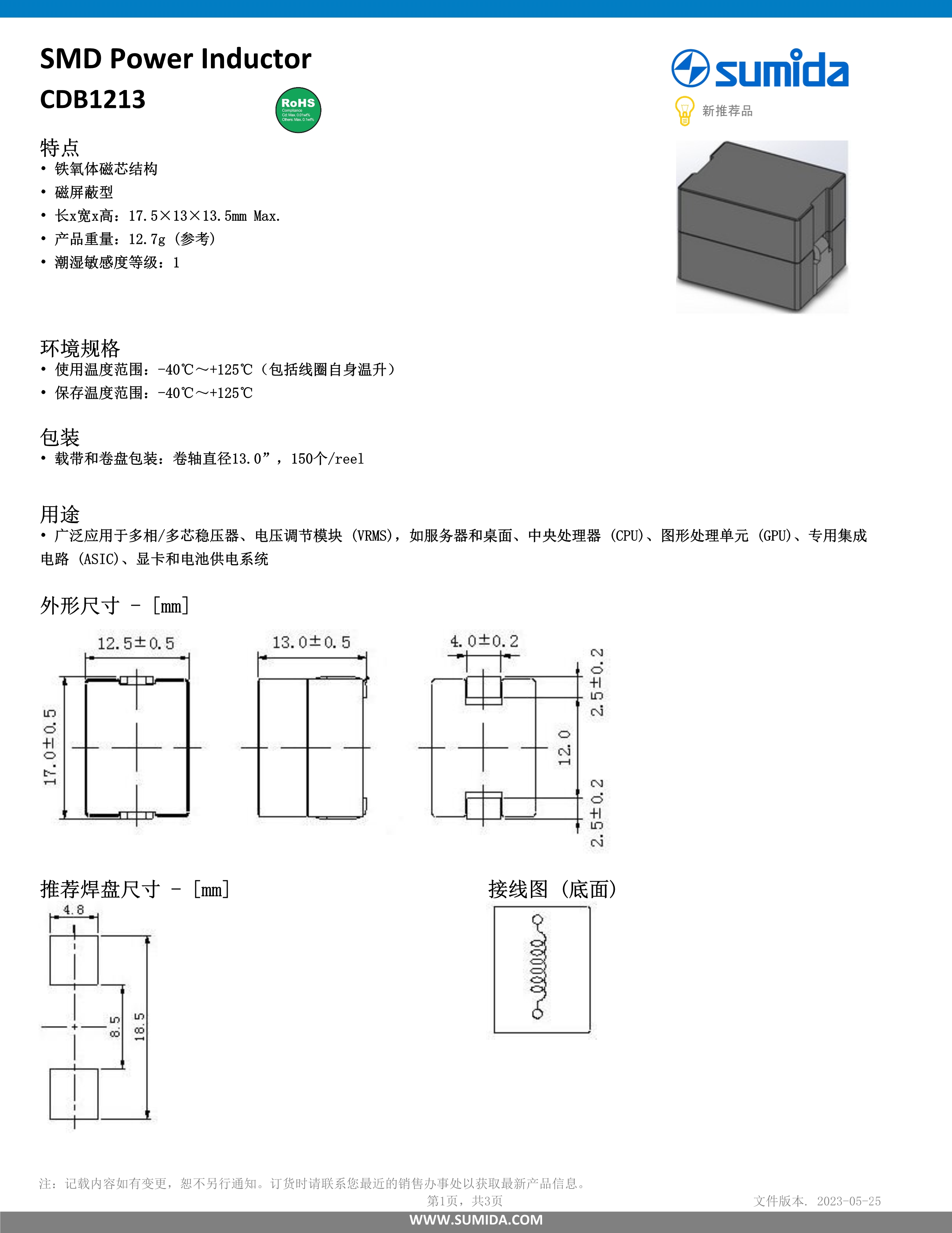 胜美达大电流电感器CDB1213系列