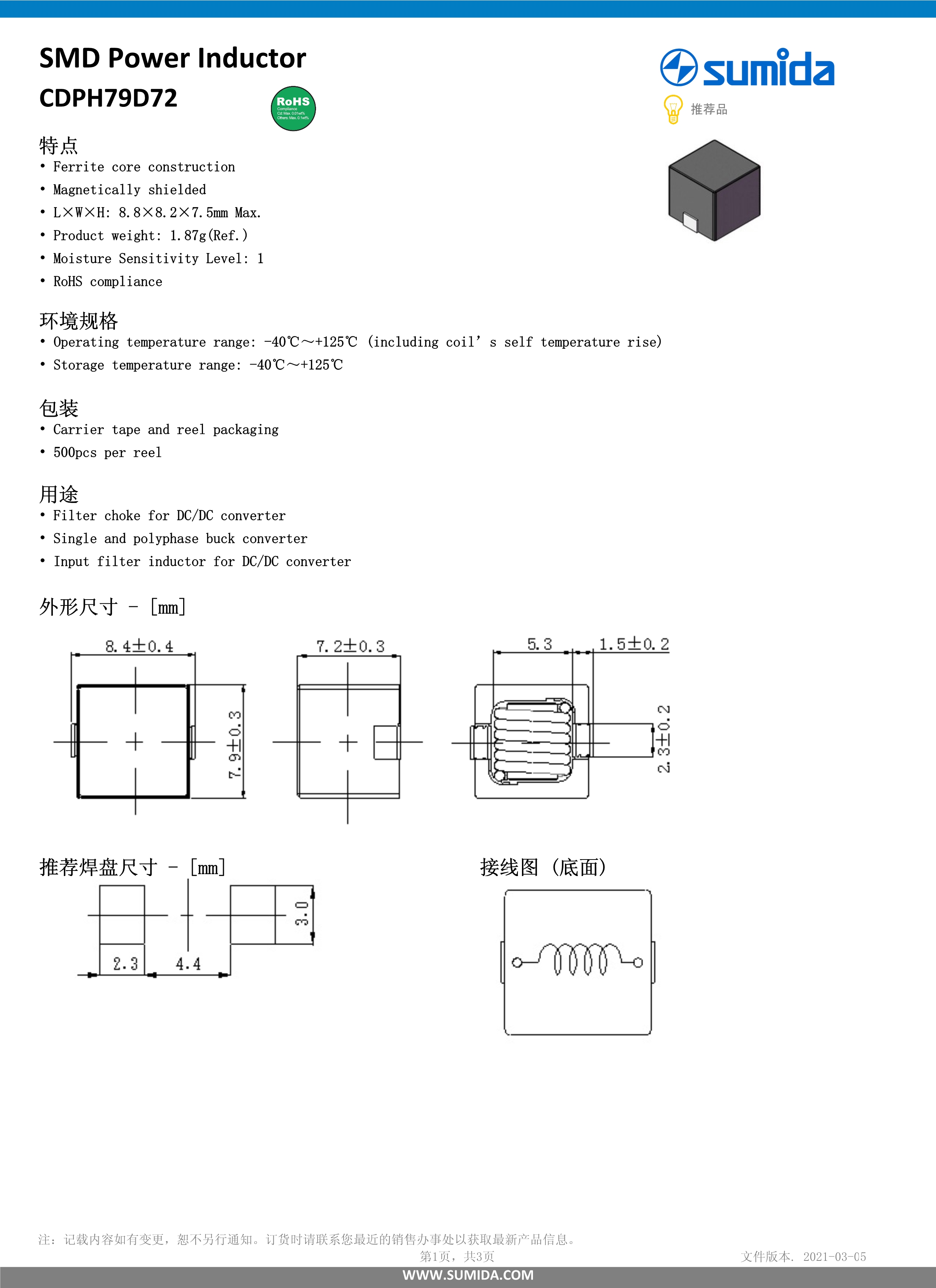 胜美达大电流电感器CDPH79D72系列