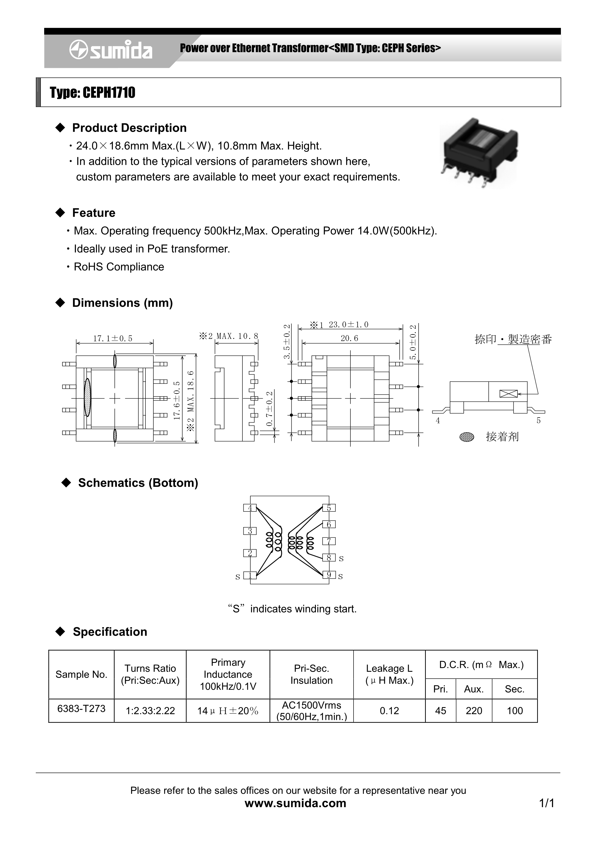 胜美达电源变压器CEPH1710系列