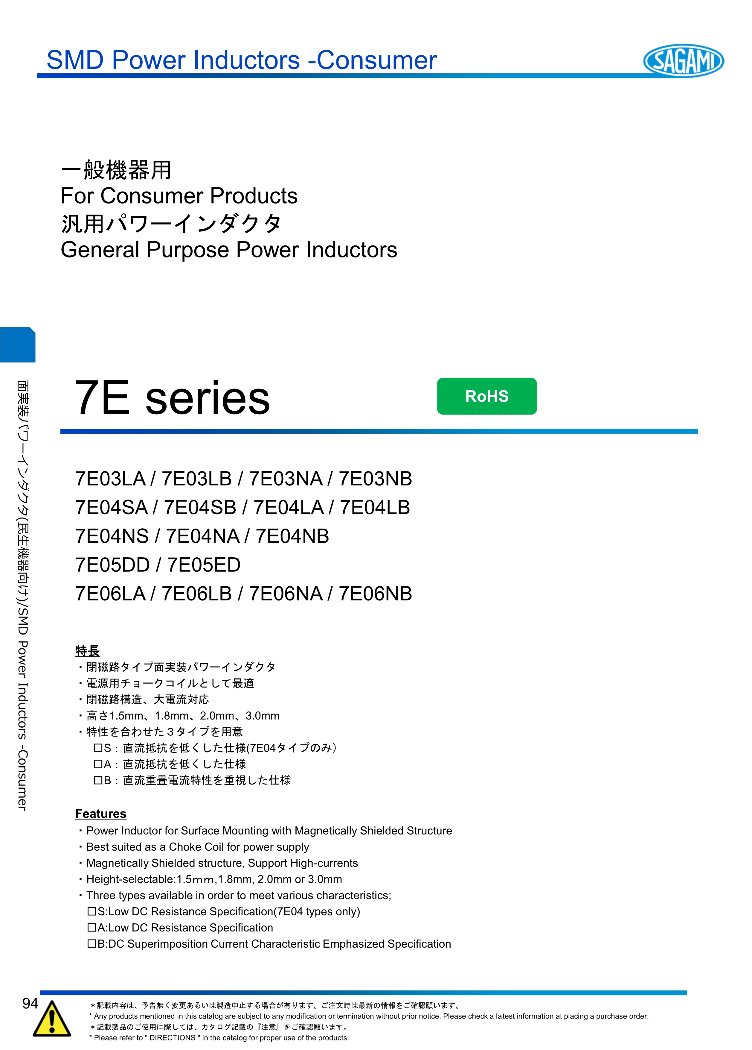 SAGAMI功率电感7E系列