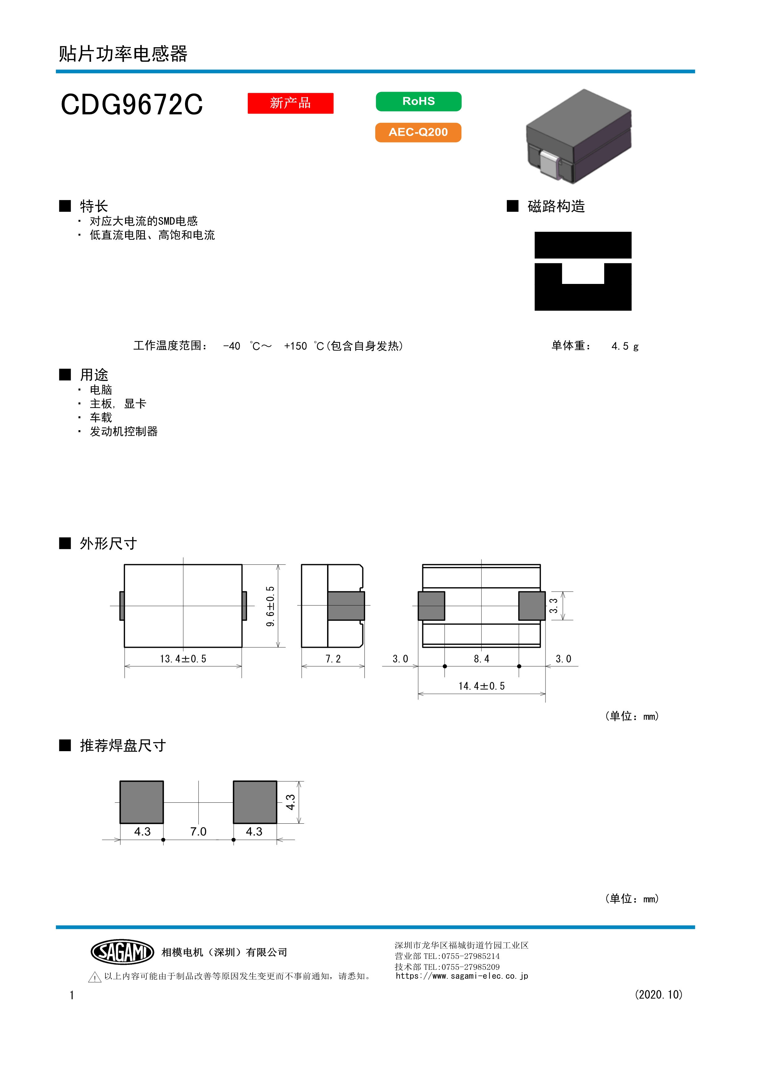 SAGAMI功率电感CDG9672C系列