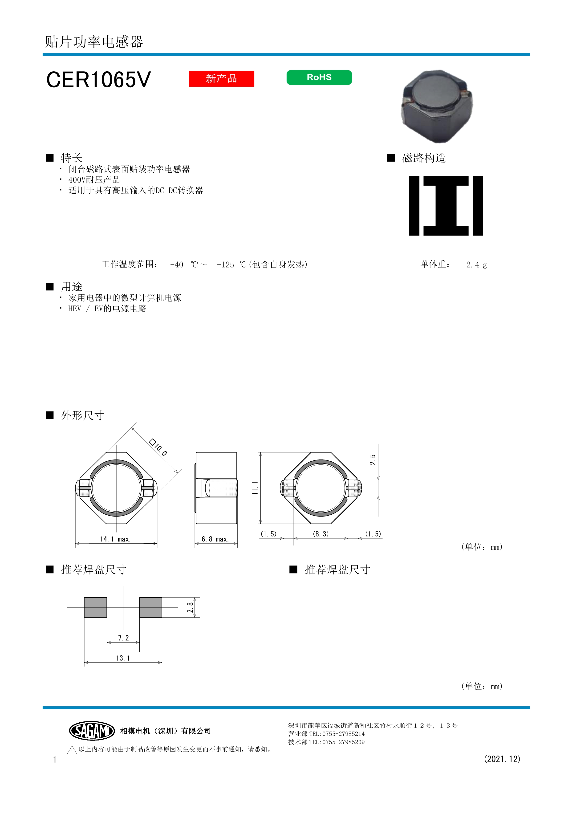 SAGAMI功率电感CER1065V系列