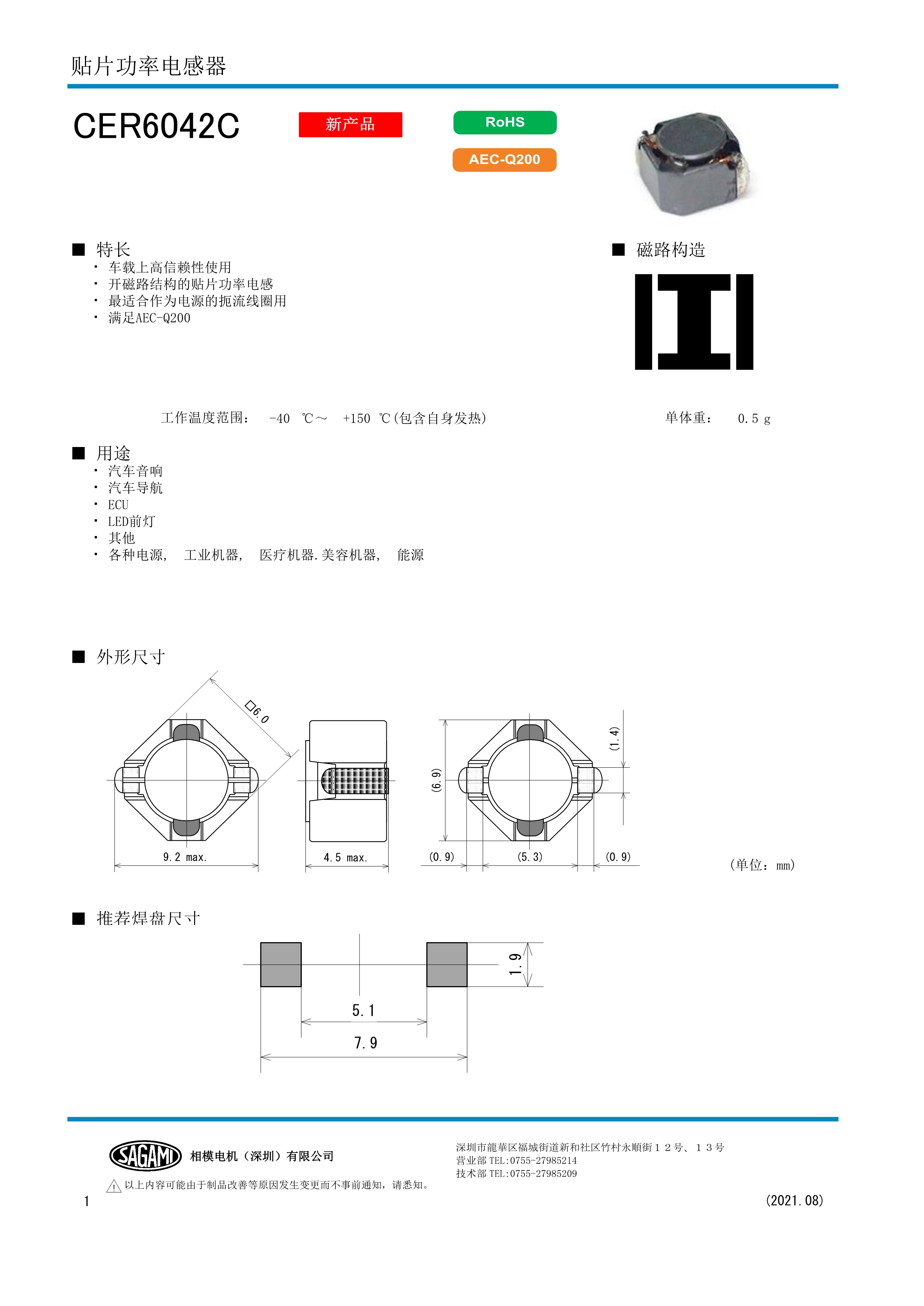 SAGAMI功率电感CER6042C系列