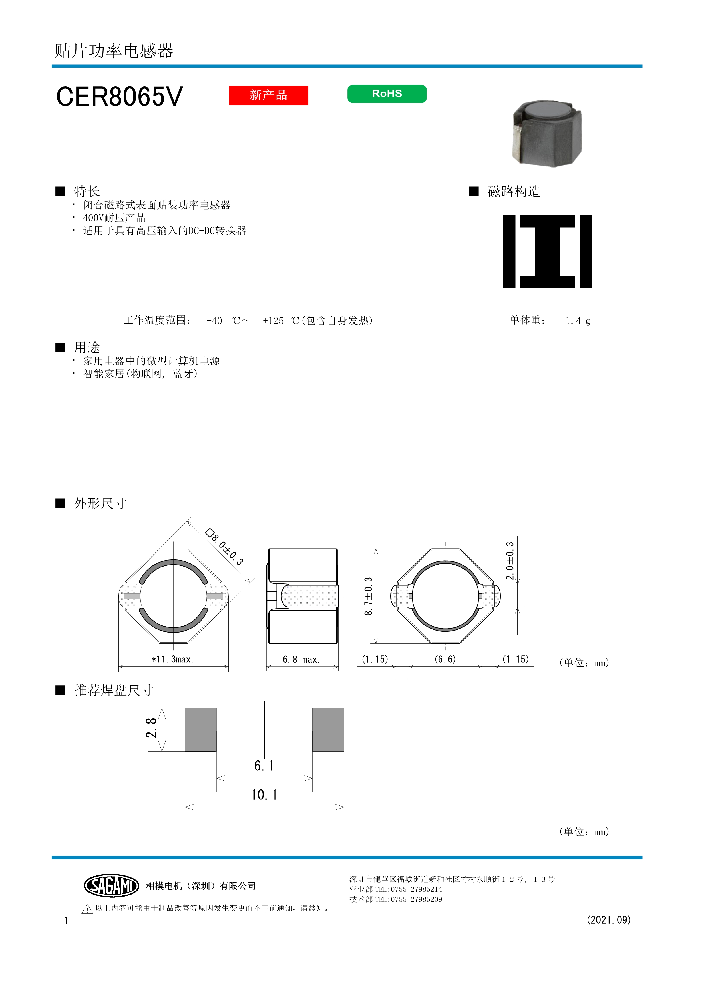 SAGAMI功率电感CER8065V系列